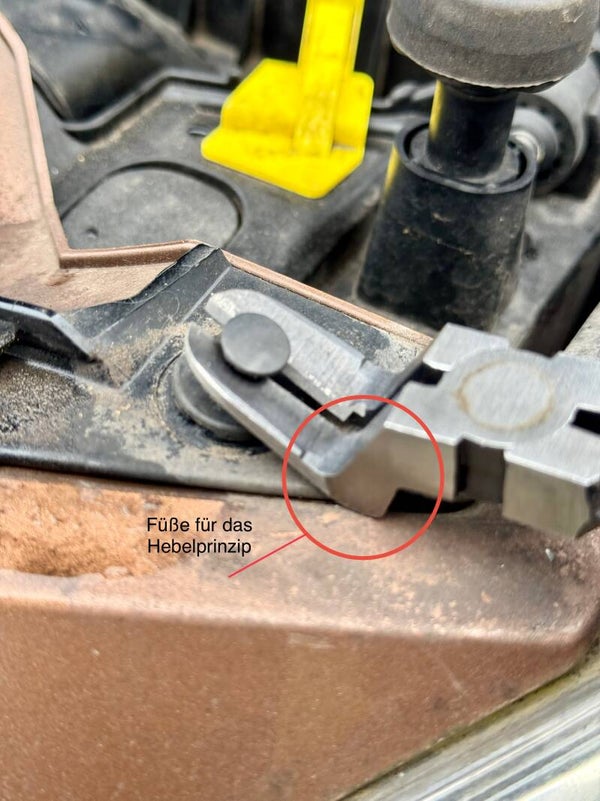 - Dank der Aussparung können die meisten Clipse ohne Beschädigung demontiert werden. Sehr gute Hebelmöglichkeiten dank durchdachter Konstruktion.
